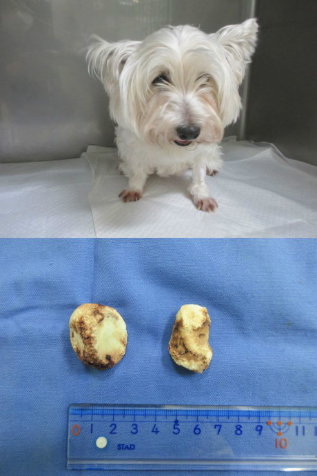 もともと膀胱に結石ができており、様子をみていましたが排尿姿勢はとるが尿が出ないことが増え、手術をすることになりました。